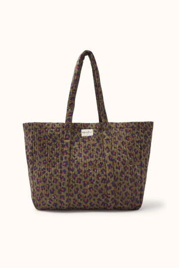 Le sac BUDDHA en coton matelassé adopte un imprimé léopard audacieux qui ne passe pas...
