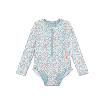 Le costume de natation des filles avec un imprimé de fleurs vertes rayonne de joie...