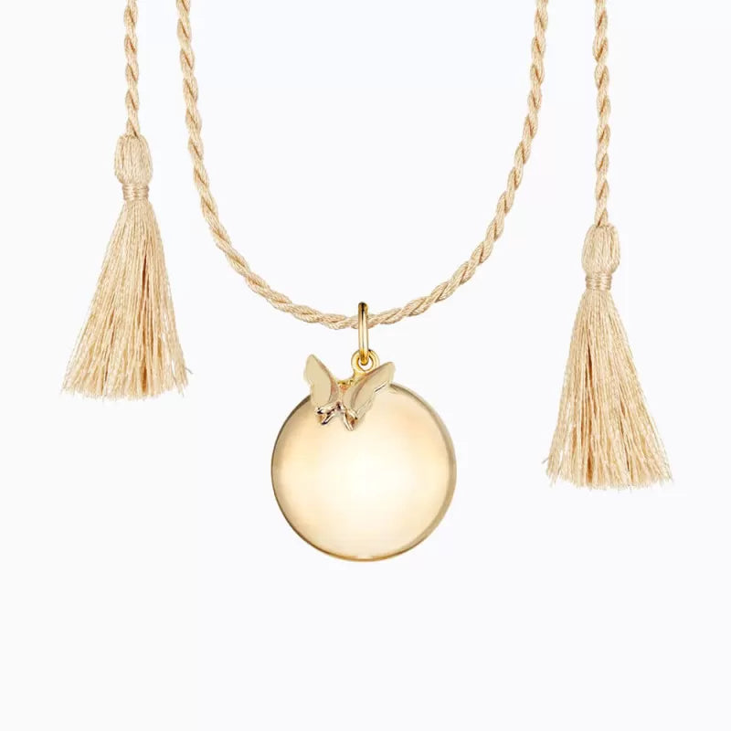 Son papillon recouvert d'or jaune 18 carats évoque la beauté et la puissance de votre transformation "de la femme à la mère".