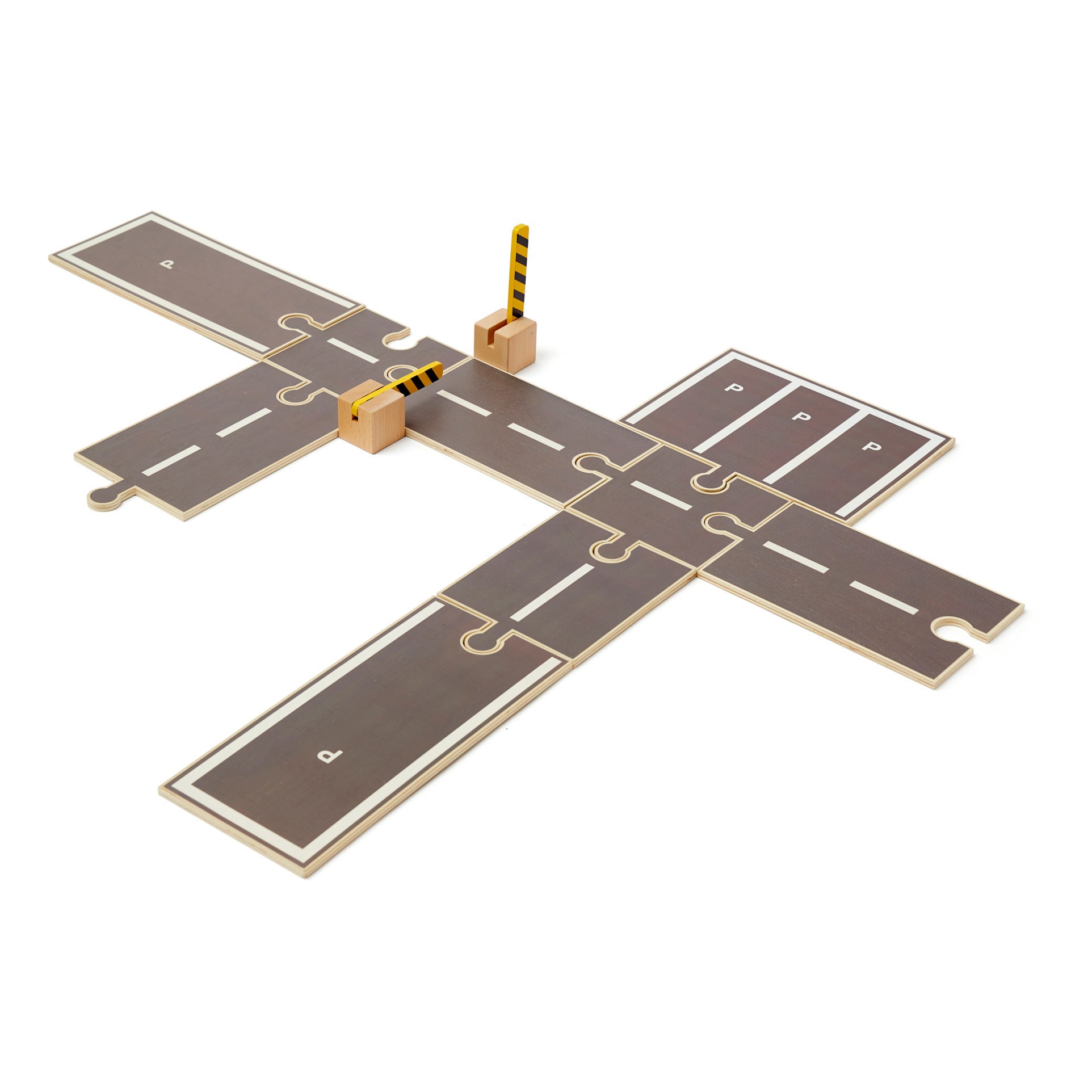 Ce circuit en bois à monter soi-même est composé de trois places de parking, d'une barrière routière, de six routes et de deux longues places de parking destinées aux camions et bus. C'est à votre enfant de laisser libre cours à son imagination pour se créer de merveilleuses aventures.