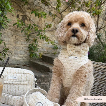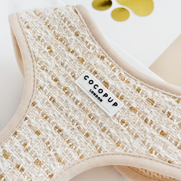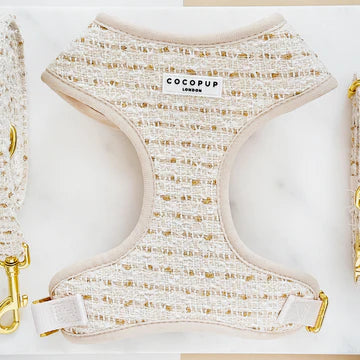 Promenez votre chiot avec style avec notre harnais de cou réglable en tweed texturé vanille. Fabriqué à partir de tissu de luxe, ce harnais est parfait pour toute occasion spéciale. Démarquez-vous du pack avec la texture tendance du tweed et la couleur crème vanille.