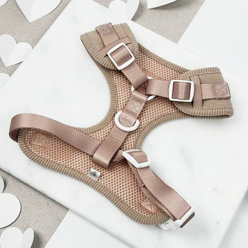 Qu'il s'agisse d'une promenade dans le parc ou d'une course de café avec votre chiot en remorque, le harnais de cou réglable Chai Hearts apporte gentillesse et confiance à chaque sortie. Le matériau du cordon nude est super doux, et les cœurs brodés blancs sont totalement adorables !