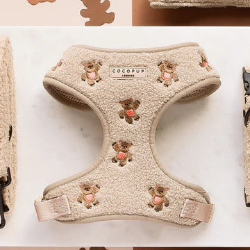 Adoptez la surcharge de gentillesse avec notre harnais de cou réglable en peluche brodé ! Ce harnais est parfait pour les promenades quotidiennes de votre ami à fourrure ! Avec ses jolis ours en peluche brodés, votre chiot fera sûrement tourner les têtes tout en restant à l'aise dans son tissu doux. Préparez-vous à de sérieux "awws" et à des compliments sans fin !