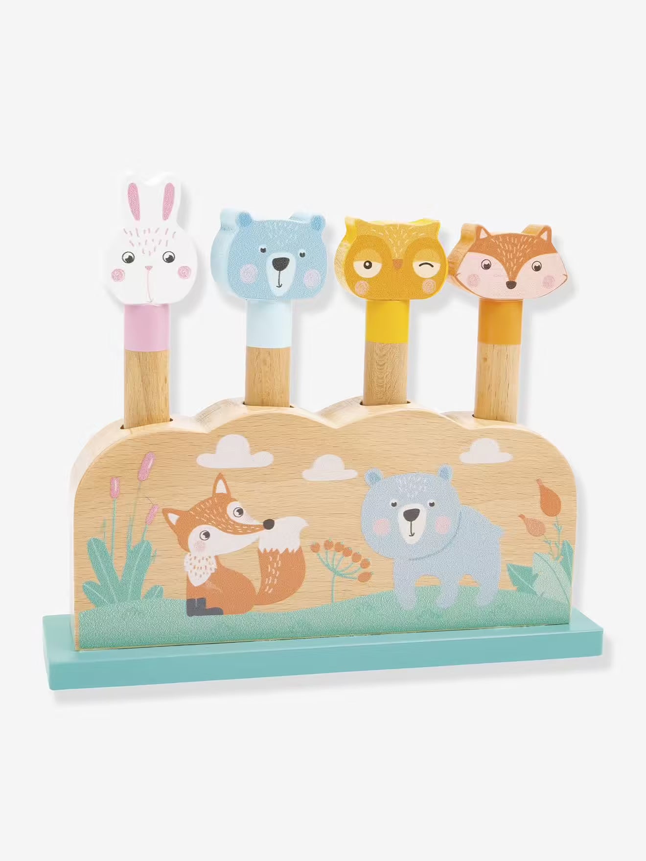 - Steck & pop : les petits animaux des bois sautent gaiement de la base lorsqu’on relâche !