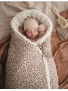 Tissu extérieur en gaze de coton organique imprimée. Intérieur en tissu polair beige ultra-doux.