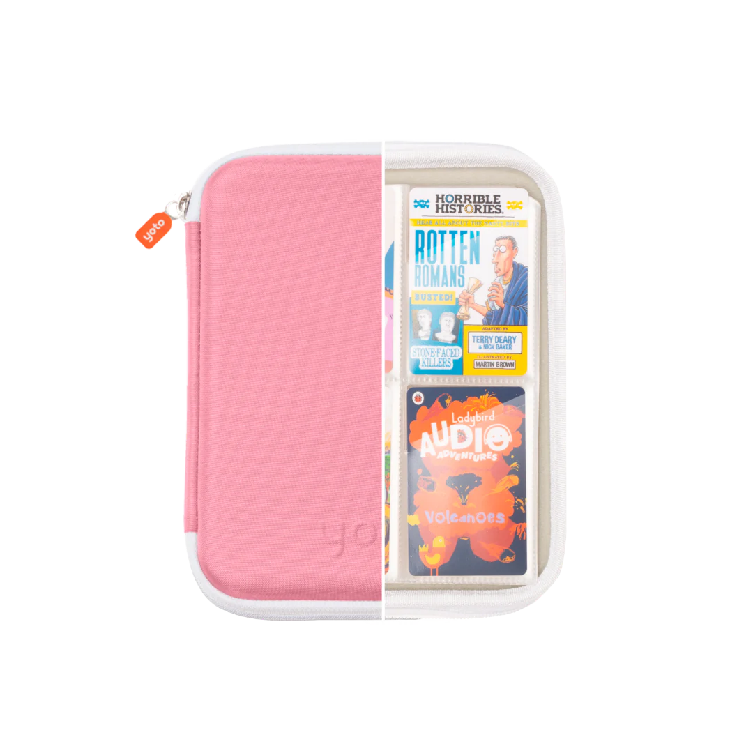 Ce porte-cartes souple peut contenir jusqu'à 64 cartes Yoto - c'est beaucoup d'écoute! Les petites poches sont inclinées pour faciliter le rangement des cartes par les petites mains et une simple fermeture à glissière permet de l'ouvrir et le fermer.
